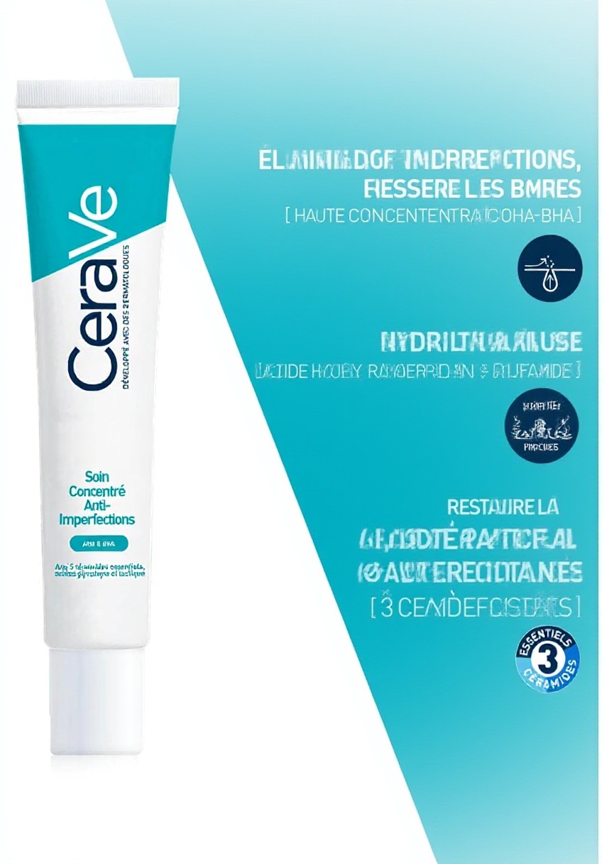Ce soin concentré de CeraVe s’adresse aux peaux à tendance acnéique cherchant à réduire les imperfections et resserrer les pores dilatés. Sa formule combine AHA, BHA, acide hyaluronique et 3 céramides dans une texture légère de 40 ml. Fabriqué en France, il s’intègre facilement dans une routine matin ou soir, avec une légère période d’adaptation pour les peaux sensibles.